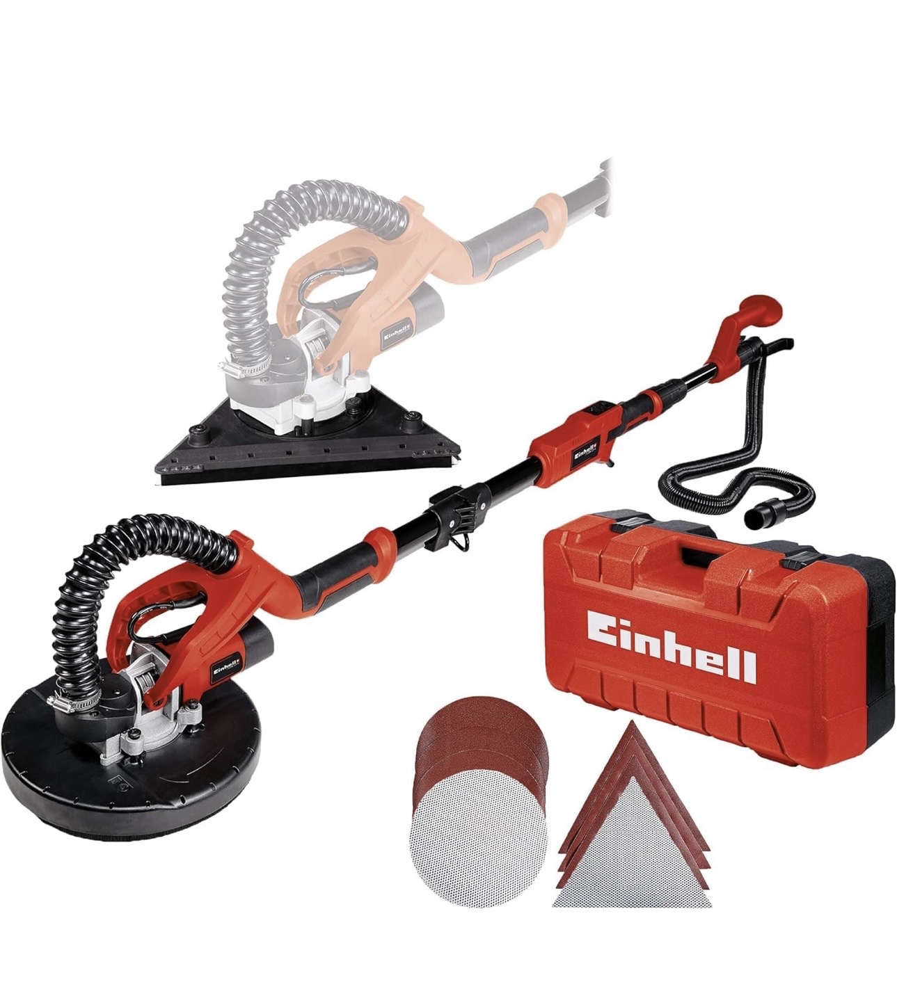 Einhell Trockenbauschleifer für Wand und Decke, wechselbarer Schleifteller, Bürstenkranz gefedert, bis 165 cm Teleskop-Stiel.